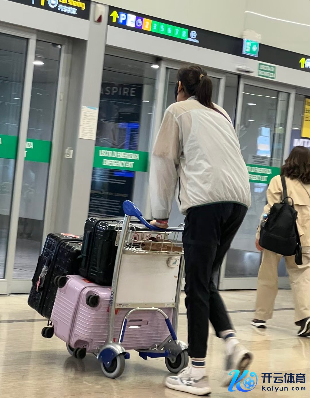 从球迷偶遇况兼共享的像片来看,朱婷在机场身穿白色通顺夹克与玄色通顺长裤,搭配灰白色通顺鞋,扫数东说念主景象松驰当然,她戴着玄色口罩折腰看手机,肩背紫色挎包,身边是一车整皆摆放的行李,三个行李箱,其中淡紫色拉杆箱在机场东说念主群中极度显眼。