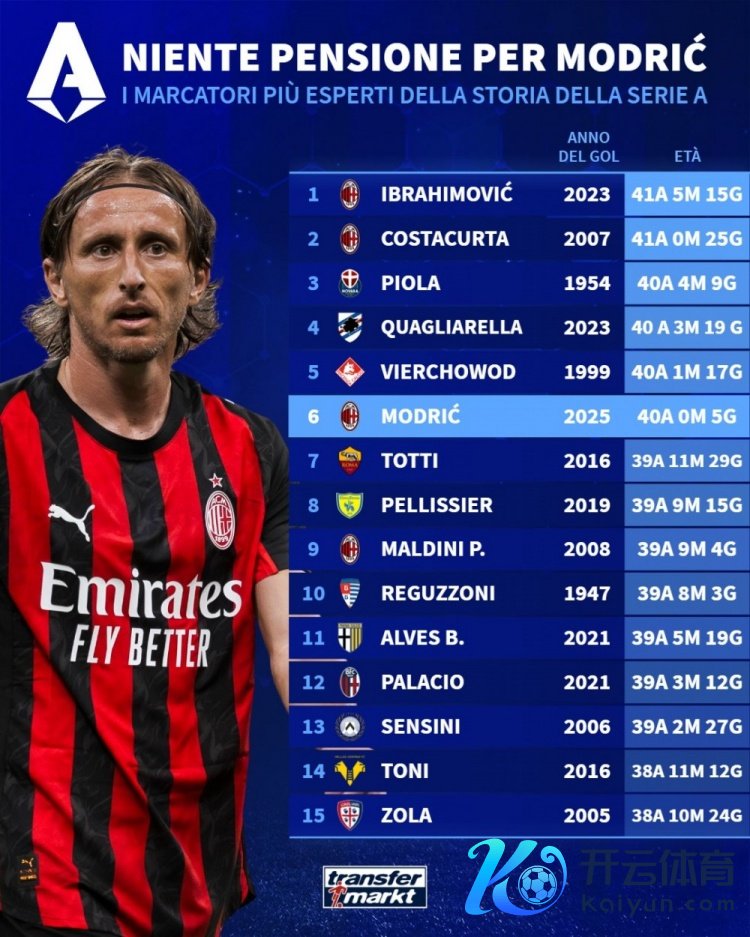 9月15日讯 意甲第3轮比赛,莫德里奇破门,匡助米兰主场1-0打败博洛尼亚。德国转会市集列出了意甲年岁最猛进球者名次,伊布居首,莫德里奇名规律6位。