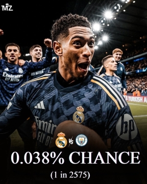 从2019/20赛季启动,皇马与曼城在欧冠中近7年遭逢6次,据AI策画,这一概率仅为0.038%。