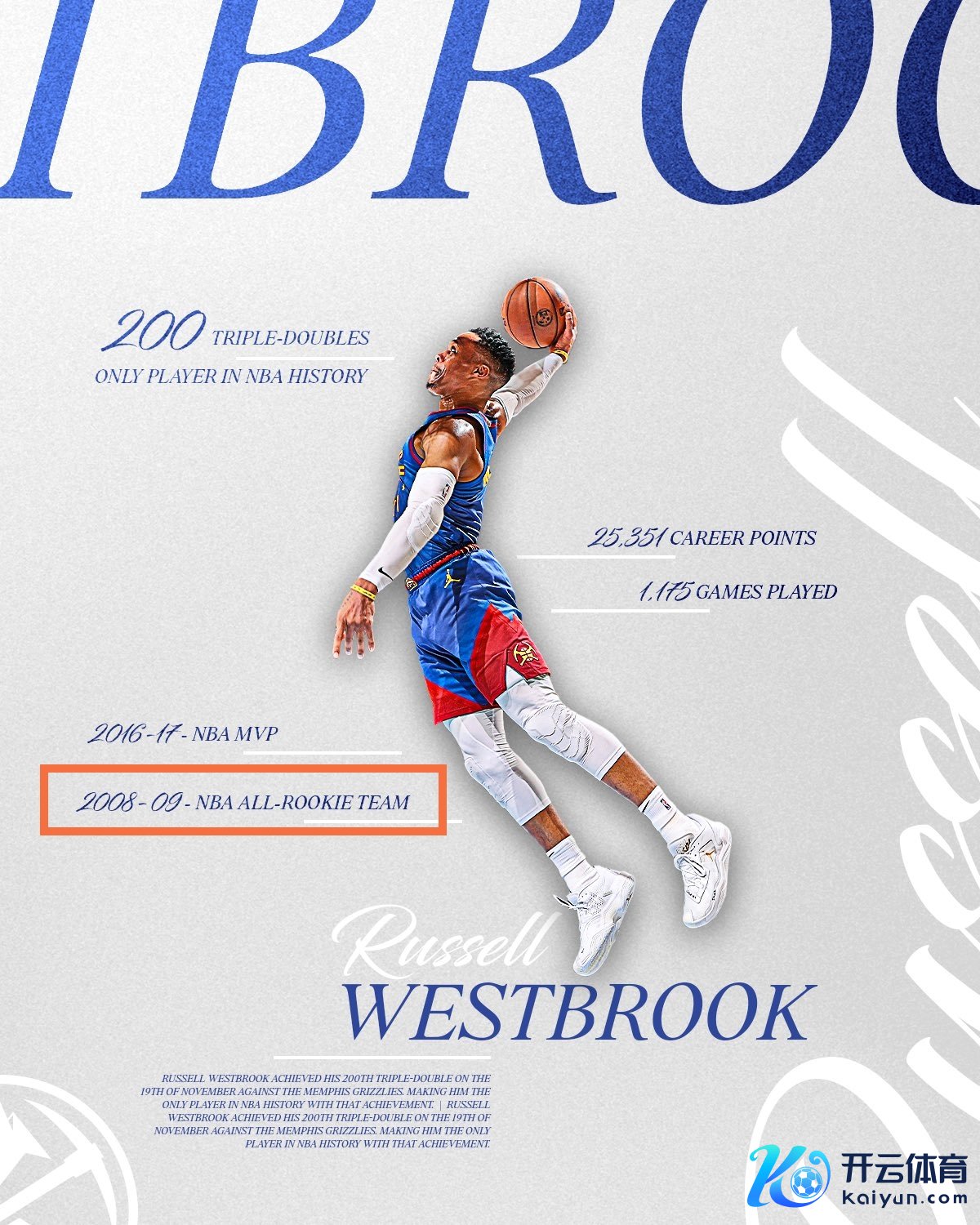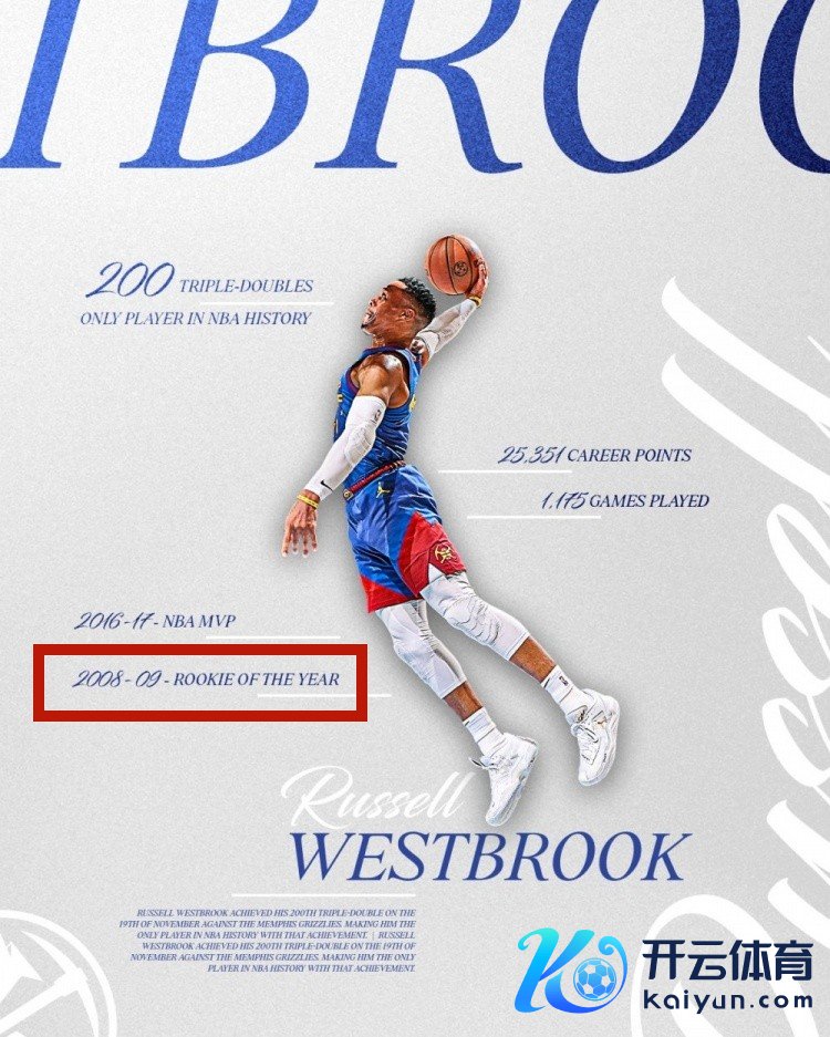 11月21日讯 昨日威少砍下个东谈主生计200记三双,掘金官方至极作念图祝愿。