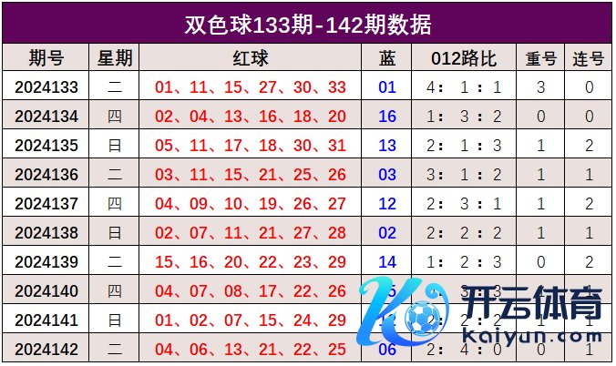 双色球第2024142开奖奖号:红球04、06、13、21、22、25,蓝球06。红球012路比2:4:0,未开出重号,开出1组连码组合。上期开出小码蓝球06。
