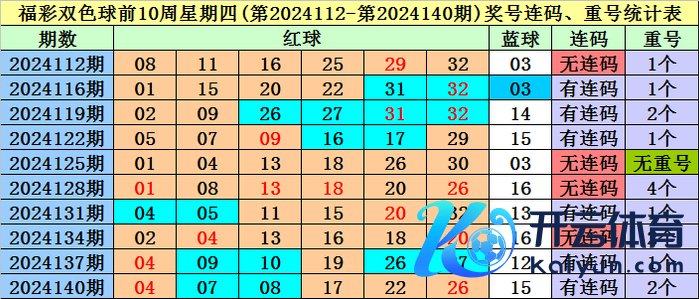 双色球前10周星期四(第2024112-第2024140期)红球号码频次统计: