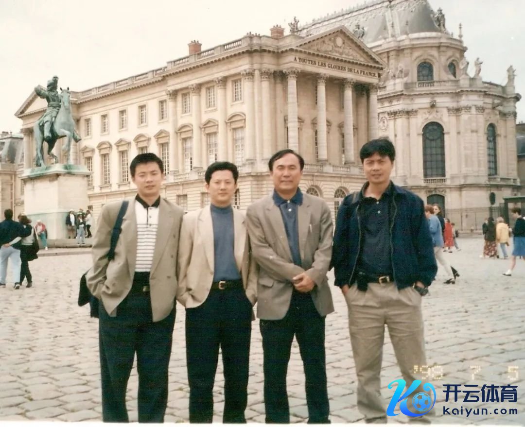 ▲1998年采访法国寰宇杯技能,严俊君(右二)与其时的《足球》报记者雷青峰、谢奕、梁嘉建合影(由左至右)。
