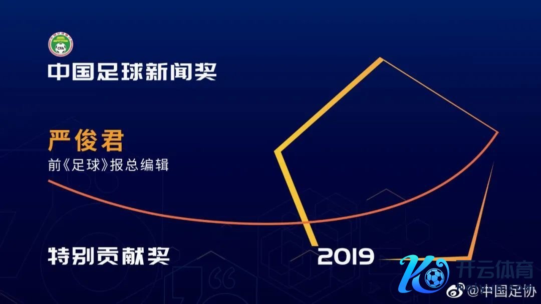 ▲严老获首届中国足球新闻奖至极孝敬奖