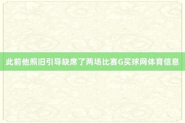 此前他照旧引导缺席了两场比赛G买球网体育信息