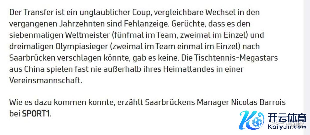 提及来,2024年乒坛最大的“瓜”之一,非樊振东倏得“空降”德甲莫属吧,你说吧,本来全球球迷都奔着巴黎奥运热身赛、国乒封神榜蹲守着,谁成想被横空杀出的东哥给秀了一脸操作,这不,德国第一体育网拉来了萨尔布吕肯大雇主巴罗斯一顿爆料,把幕后那点事聊得清了了楚。