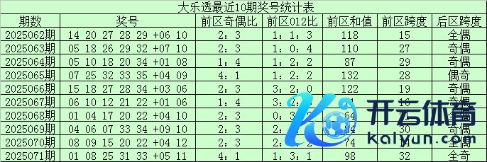 前区012路分析:上期前区012路奖号比开出1:3:1,最近10期前区012路奖号比为15:19:16,其中1路奖号走势偏热。本期预测0路号码走热,看好012路比3:1:1。