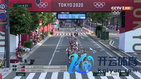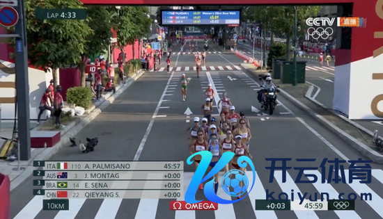 比赛进行到4公里,切阳什姐在队列左边最前边领走,杨家玉和刘虹处在第五和第六的位置,4公里用时18分31秒,选手的配速较此前有所擢升。