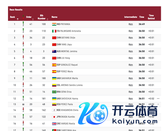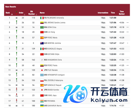 进行到18公里,意大利选手也曾保合手最先,刘虹过期22秒排在第4,距离第3的巴西选手差了4秒。