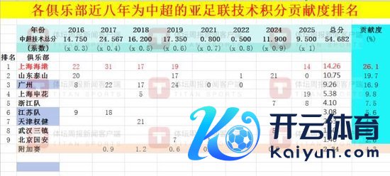 就近八年的情况来看,为中超现时的工夫积分孝敬度最高的,依然照旧海港。尽管许多东谈主王人在说,海港在2023-24赛季的附加赛中被泰国球会所淘汰,但工夫积分更多地照旧指正赛中的比赛情况,忽略了先前几个赛季中所赢得的工夫积分,这对海港并不自制。