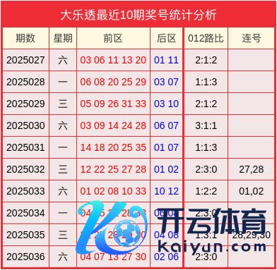 开奖归来:大乐透2025036开奖号码为04、07、13、27、30+02、06体育集锦。其中012路比为2:3:0、无连号。