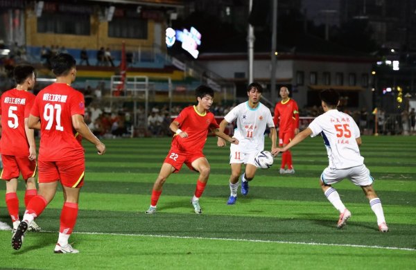9月23日晚,在贵州省黔东南苗族侗族自治州榕江县城北新区“村超”足球场,贵州黔东南榕江县足球代表队球员(红衣)与贵州黔南福泉市足球代表队球员在比赛中强烈拼抢。 当晚,2025年贵州村超“红石榴杯”宇宙乡村足球邀请赛在贵州省黔东南苗族侗族自治州榕江县城北新区“村超”足球场开赛。榕江县村超球迷协会和榕江县侗学商榷会组织啦啦队为球队加油助阵。 广东清远连南瑶族自治...