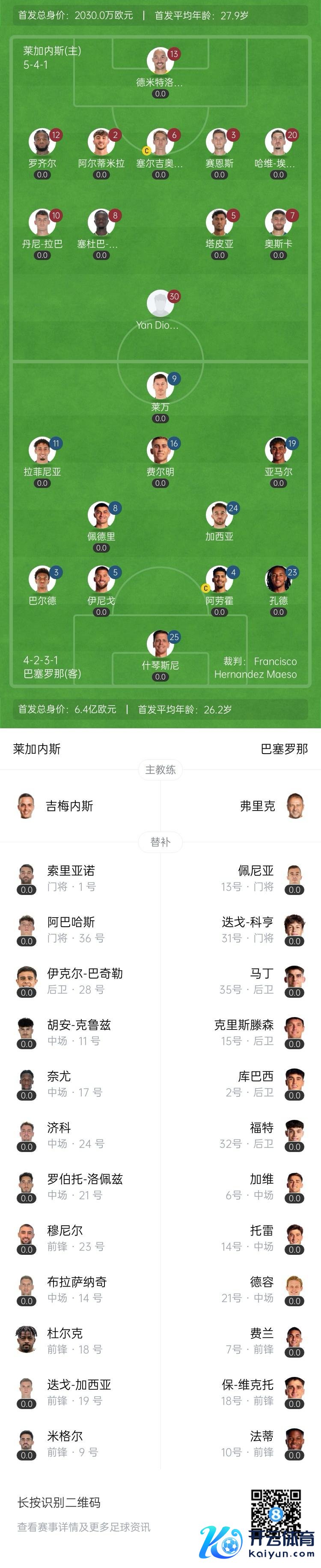 巴萨替补:13-佩尼亚、2-库巴西、6-加维、7-费兰-托雷斯、10-法蒂、14-巴勃罗-托雷、15-克里斯滕森、18-保-维克托、21-德容、31-迭戈-科亨、32-赫克托-福特、35-杰拉德-马丁