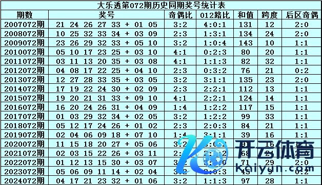 水镜体彩大乐透第2025072期历史同时奖号分析: