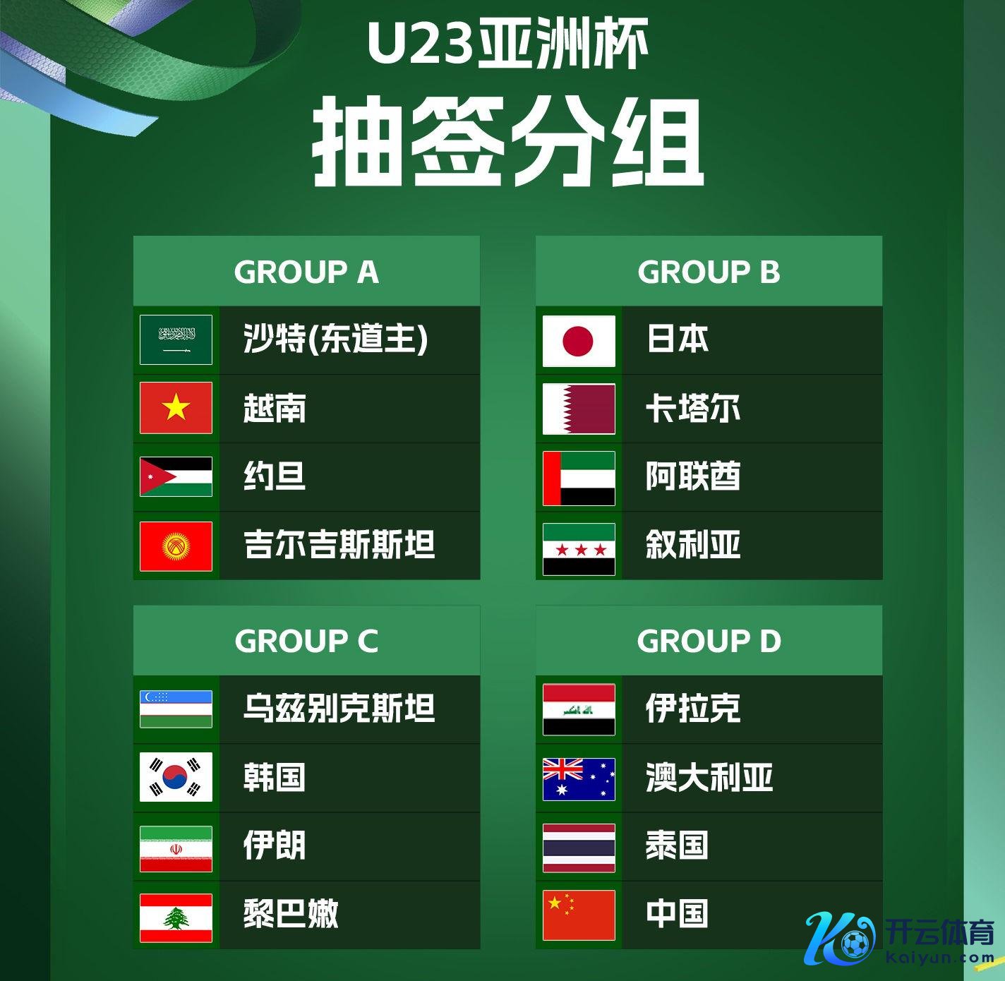U23亚洲杯圆善分组——