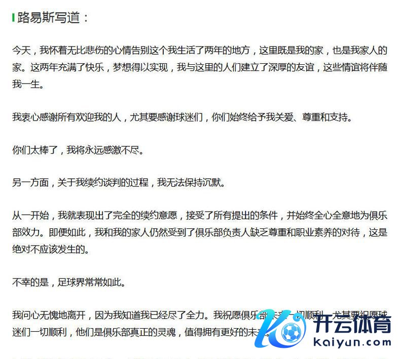 随后路易斯话锋一行,示意活气。“对于我续约洽商经过,我无法保握千里默。 我从一启动就进展出了完全续约意愿,采纳悉数提议的条目,并永久尽心全意地为俱乐部效劳。即便如斯,我和家东说念主仍受到俱乐部崇拜东说念主缺少尊重和管事素质的对待,这是皆备不应该发生的。晦气的是,足球界频频如斯。 我与问心无愧地离开,因为我知说念我已尽了全力。”