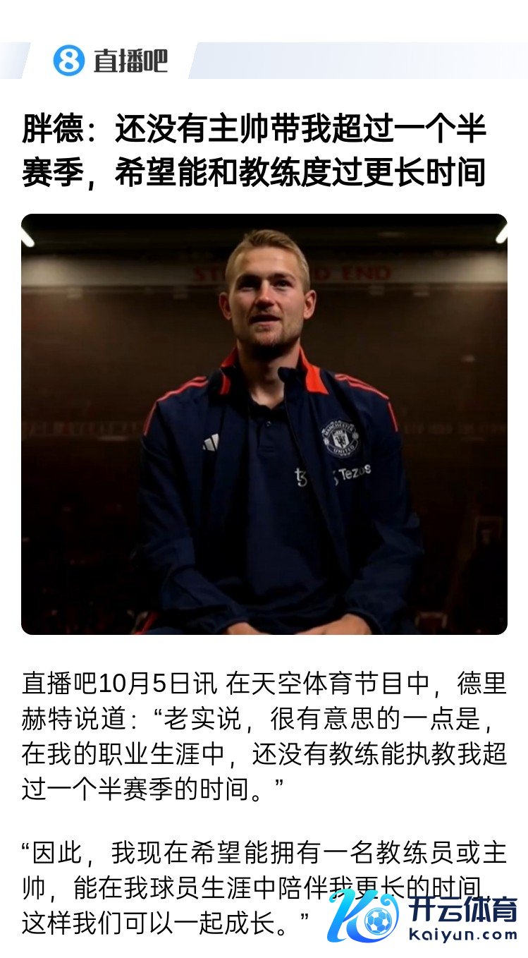 德里赫特本东说念主在2024年10月摄取采访时暗示:“西宾说,很有好奇景仰的少许是,在我的处事生存中,还莫得教诲能持教我跨越一个半赛季的时辰。