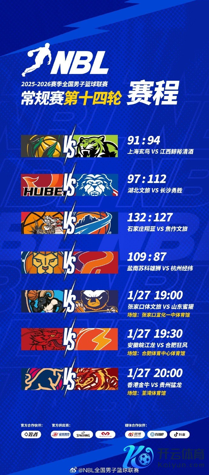 NBL老例赛第十四轮罢休了首日较量,今天还将进行三场比赛!体育录像/图片