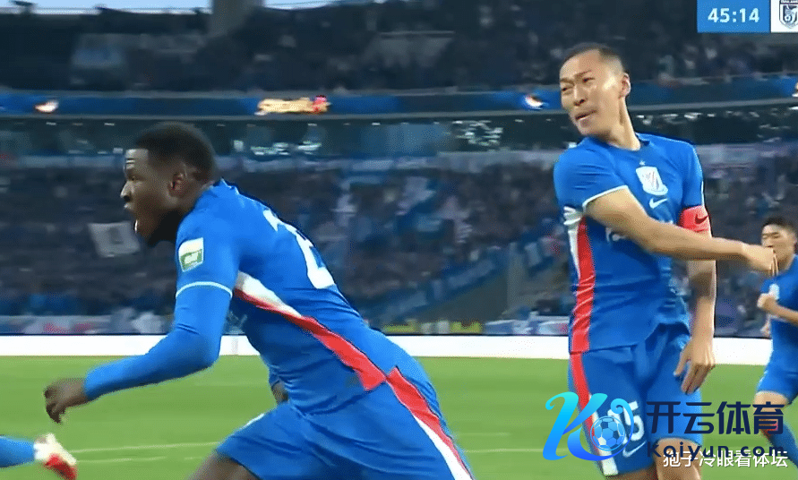 第45分钟,上海申花得到第8个角球,高天意的传球落点精确,运用陈晋一的掩护,盖耶后排插上,高高跃起的头球力量透彻。