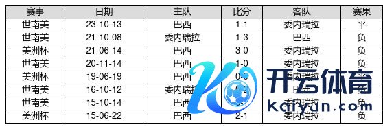 委内瑞拉 VS 巴西两队近10年的交战次数为8场,委内瑞拉0胜2平6负,赢球概率为0.0%,平局概率为25.0%,输球概率为75.0%。