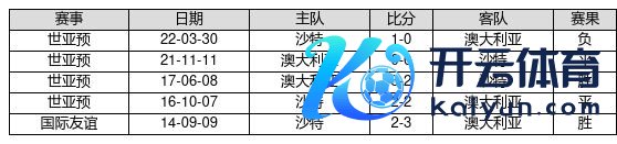 澳大利亚 VS 沙特两队近10年的交战次数为5场,澳大利亚2胜2平1负,赢球概率为40.0%,平局概率为40.0%体育录像/图片,输球概率为20.0%。