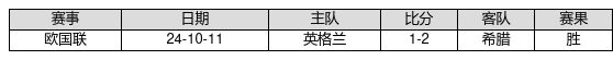 希腊 VS 英格兰两队近10年的交战次数为1场,希腊1胜0平0负,赢球概率为100.0%,平局概率为0.0%,输球概率为0.0%。