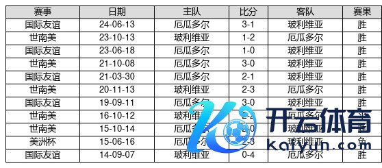 厄瓜多尔 VS 玻利维亚两队近10年的交战次数为11场,厄瓜多尔9胜1平1负,赢球概率为81.8%,平局概率为9.1%,输球概率为9.1%。