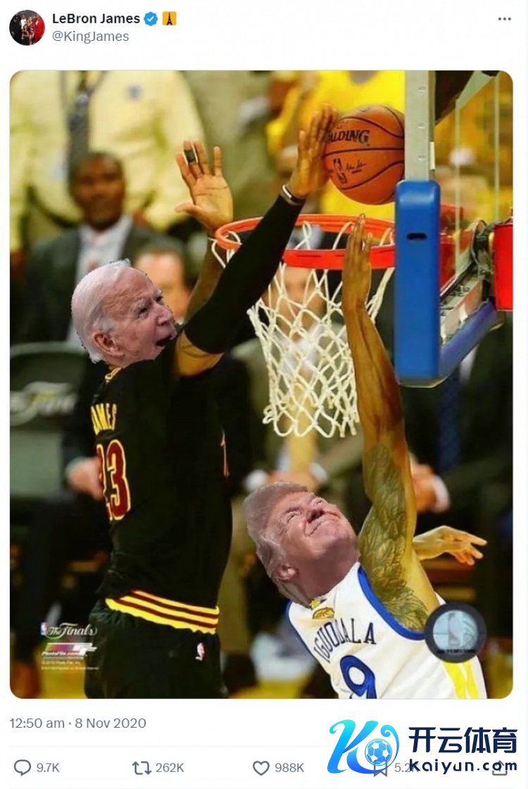 2020年特朗普逮到了反击契机,宣称为赢得第四个总冠军的詹姆斯感到痛心,因为总决赛收视率下落了许多。“我一眼齐没看,没趣透了。”詹姆斯名义上云淡风轻,说没风趣风趣在酬酢媒体上开战。比及拜登赢得大选,詹姆斯立马在推特上共享了那张经典的追帽相片,把伊戈达拉和我方区分P成了特朗普和拜登。