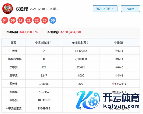 双色球第2024142期奖号开出:红球04、06、13、21、22、25体育录像/图片,蓝球06。红球号码三区比为2:3:1,质合比为1:5,012路比为2:4:0,蓝球开出0路、合数号码06。