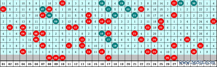 当今遗漏值在3期以内的热码红球有17个:04、06、07、11、13、14、16、17、18、21、22、23、24、27、29、30、31,遗漏值离别为:0期、2期、1期、1期、1期、0期、0期、2期、1期、3期、2期、0期、0期、1期、2期、0期、1期,上期开出了4个热码红球:本期瞻望热码开出2个,参考号码:17、27。