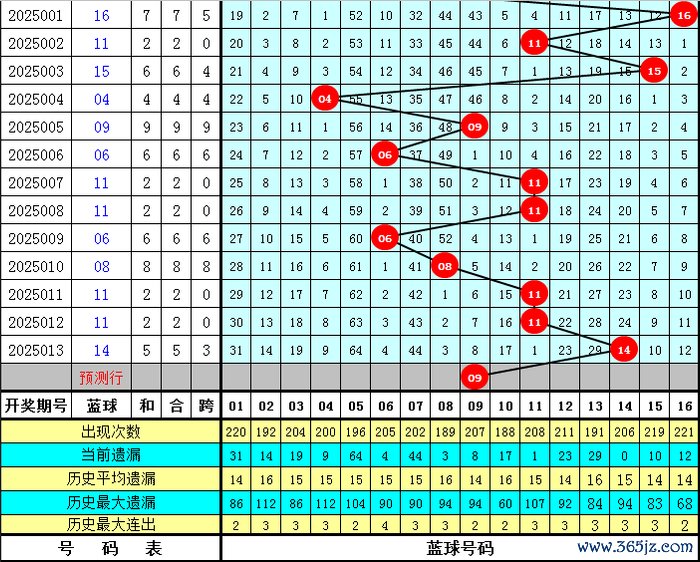 上期开出蓝球号码14,遗漏24期,为冷码。当今蓝球遗漏值15以上的冷码有7个:01、03、05、07、10、12、13;遗漏值在7-15之间的温码蓝球有5个:02、04、09、15、16;遗漏值6以内的热码蓝球有4个:06、08、11、14。本期合适顺心温码蓝球出现,参考蓝球号码:01、02、05、09、15。