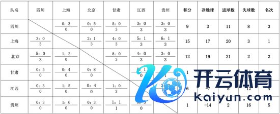 大湾区全运会足球名堂须眉16岁以下组经验赛B组(上海赛区)排名。
