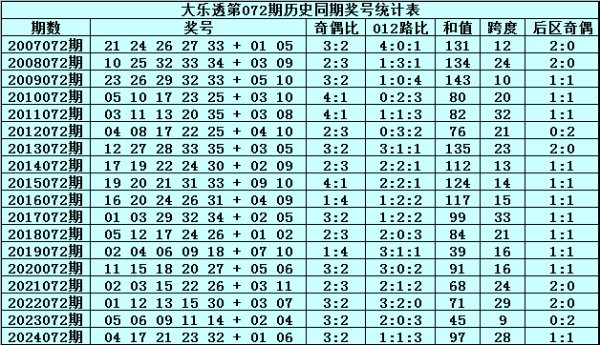 体彩大乐透第25071期开出奖号:0108253133+0511,前区奖号奇偶比为4:1,012路比为1:3:1体育录像/图片,和值为98,跨度为32。后区奖号奇偶比为2:0。 水镜体彩大乐透第2025072期历史同时奖号分析: 奇偶比:在积年同时中奇数号码走热11期,偶数号码走热7期,奖号奇偶比为48:42,最近3年奖号奇偶比分别开出3:2、3:2和3:2...
