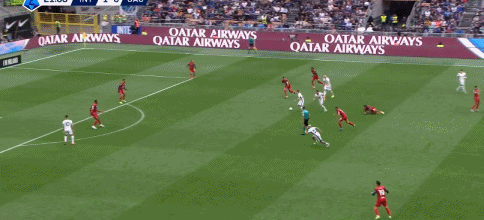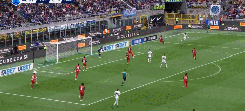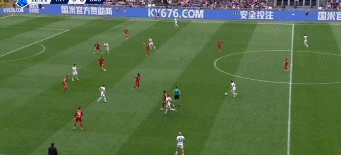 第21分钟,巴雷拉斜传,劳塔罗凌空抽射没能打正