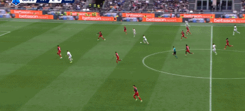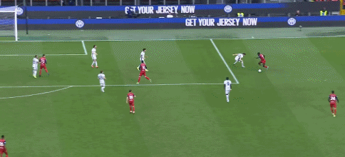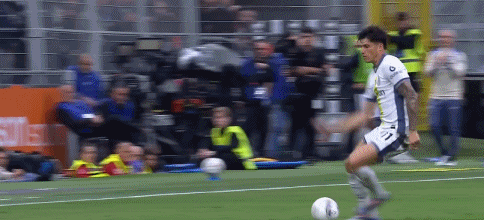 第43分钟,劳塔罗禁区倒钩扣门,皮球稍许偏出球门