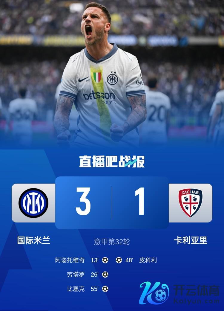 直播吧4月13日讯 北京技艺4月13日0:00,意甲第32轮,海外米兰镇守主场梅阿查球场迎战卡利亚里。上半场,爆射破门,随后助攻扩大比分。下半场,皮科利头槌扳回一城,比塞克头槌再度扩大比分,德弗里门前救险。全场比赛界限,海外米兰主场3-1打败卡利亚里,先赛一场当先第二名的那不勒斯6分。
