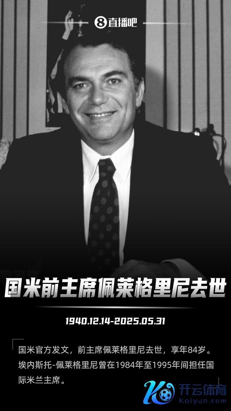 6月1日讯 国米俱乐部前主席埃内斯托-佩莱格里尼耗费,享年84岁。国米名宿鲁梅尼格对此示意诟谇。