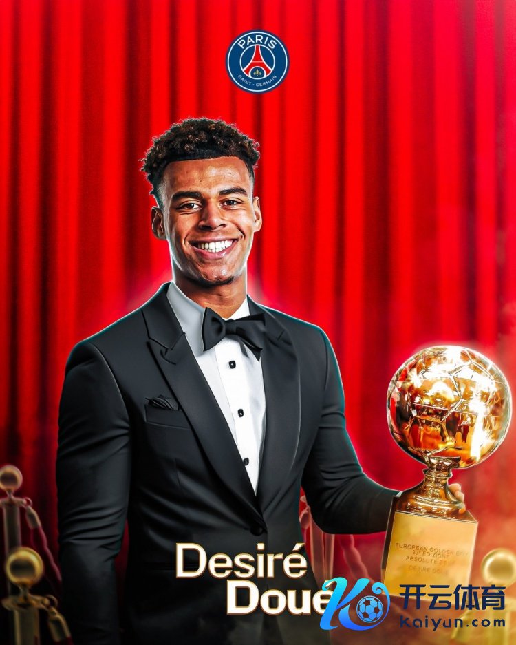 在《王人灵体育报》阁下的欧洲金童奖受奖庆典上,杜埃领取了2025年金童奖杯,巴黎官方社媒晒出海报,配文:“欧洲金童奖。”