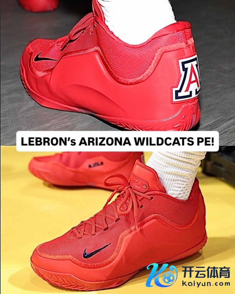 本场比赛,詹姆斯上脚了一对亚利桑那大学的LeBron 23 PE,而亚利桑那大学恰是詹姆斯二男儿布莱斯当今着力的大学。