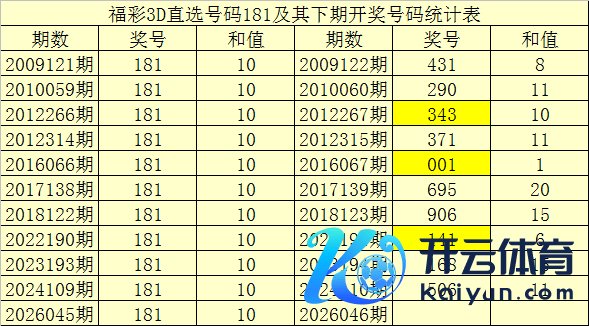 一、开奖转头:第2026045期福彩3D奖号为181。奖号奇偶比为2:1,和值为:10,跨度为:7。