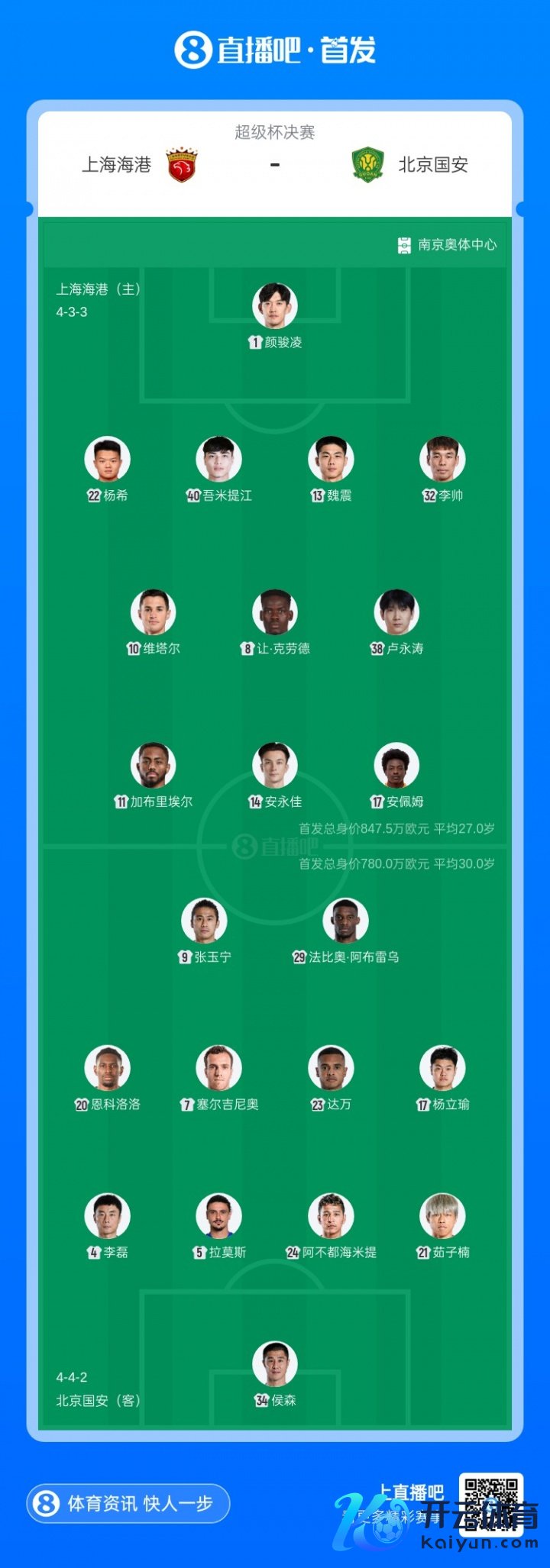 3月1日讯 今寰球午,上海海港与北京国安将伸开“超等杯”的较量。赛前两边公布首发名单,其中海港队有5名新援首发、国安队的首发中则有4位新援。