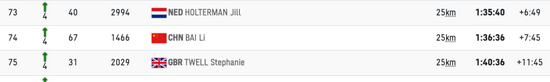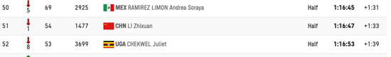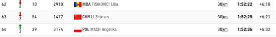 中国选手李芷萱赢得了第62名,得益为2小时45分23秒。