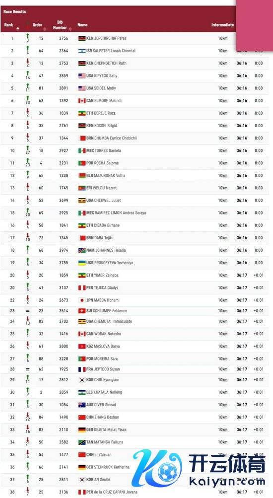 来到10公里,第一集团用时36分16秒,张德顺处在第32位,李芷萱处在第35位。白丽过时了近两分钟,处在第82位。