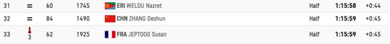 中国选手张德顺赢得第47名,得益为2小时37分45秒。