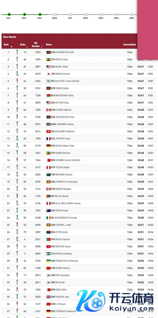 35公里用时2小时02分58秒,第一集团只剩下5东说念主,她们是女子马拉松天下记录保握者科斯盖,女子半马天下记录保握者杰普切尔切尔,首马跑出227杀入好意思国奥运军队的塞德尔,以色列女子马拉松记录保握者切姆泰,巴林选手春巴,她们将朝着金牌发起冲击。