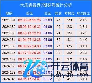 开奖总结:大乐透第2024140期奖号为:03、06、15、23、31 + 01、12。