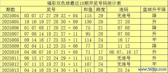 福彩双色球第2025013奖号开出:04 14 16 23 24 30 + 14,红球号码和值为111,首尾间距为26,包含连号:23 24。
