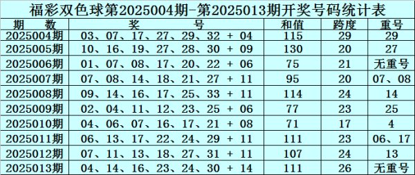 福彩双色球第2025013奖号开出:041416232430+14,红球号码和值为111,首尾间距为26,包含连号:2324。 福彩双色球第2025014期红球奖号分析: 龙头号码分析:最近10期龙头号码出现时01-10之间,号码012路比为3:6:1,其中0路号码走温,本期合适存眷0路龙头出现,参考号码03。 凤尾号码分析:最近10期凤尾号码一齐散布在21...
