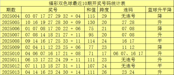 双色球第2025013期奖号开出:04、14、16、23、24、30+14,红球号码和值开出111,跨度开出26,开出重号0个:无重号。蓝球为2路号码。 最近10期红球奖号频次统计: 莫得出现的红球(3)个:05、15、26; 出现1-2次的红球(24)个:01、02、03、06、08、09、10、11、12、13、18、19、20、21、22、23、24、...